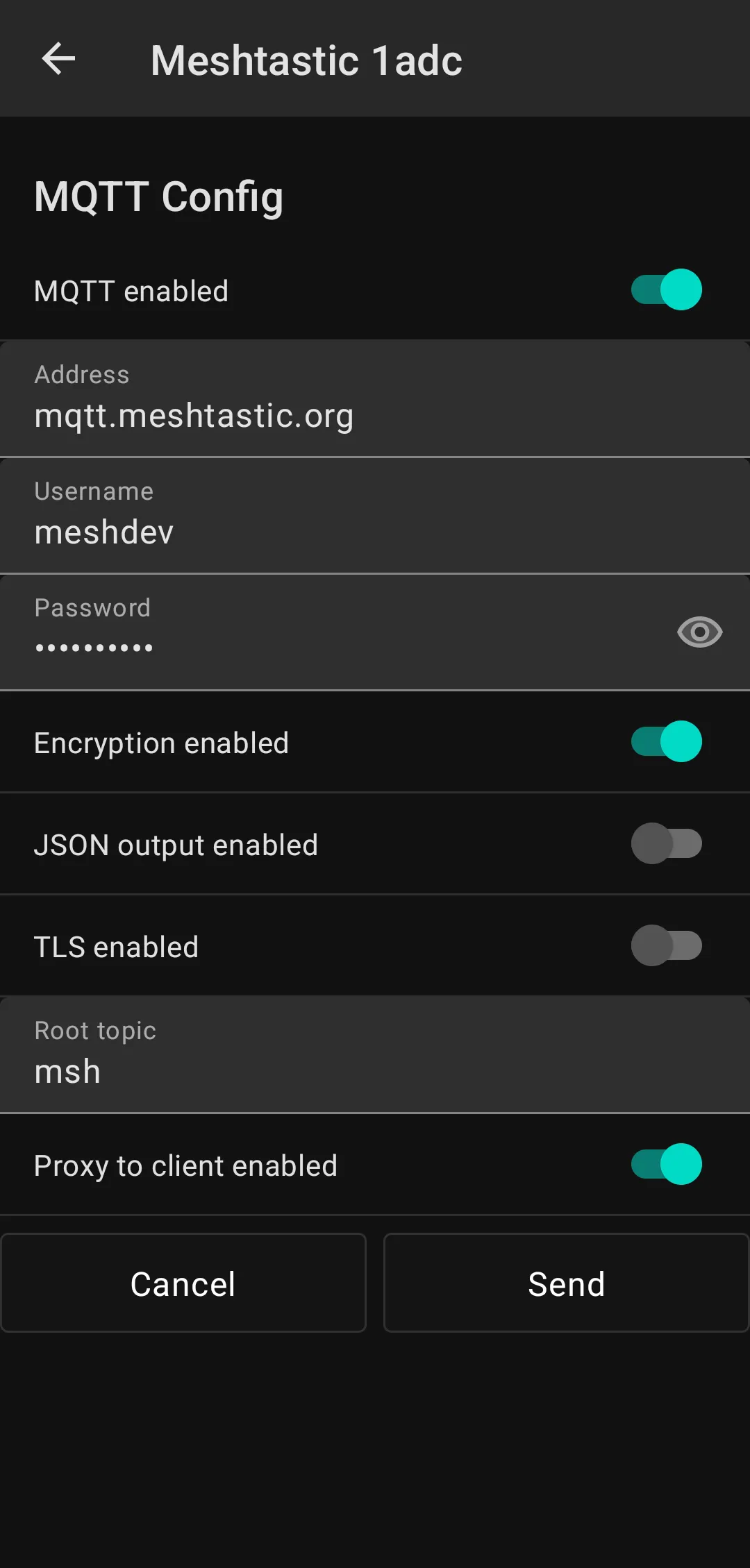 Optional: To use your phone's internet connection to send and receive packets over the web, also enable the slider for MQTT Client Proxy and skip the Configure Network Settings step below.