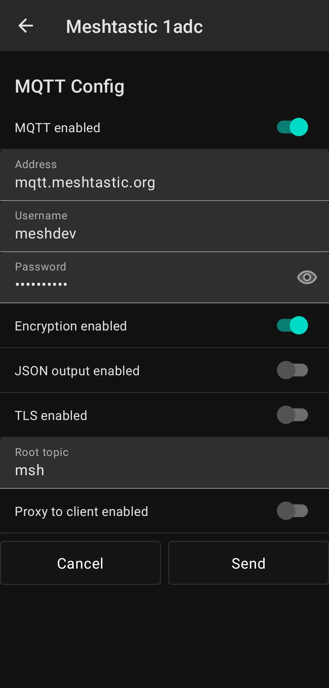 Optional: To use your phone's internet connection to send and receive packets over the web, also enable the slider for MQTT Client Proxy and skip the Configure Network Settings step below.